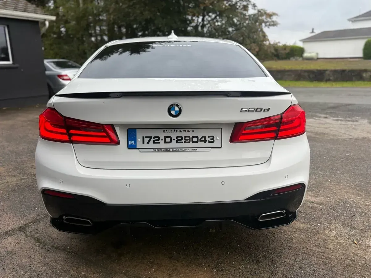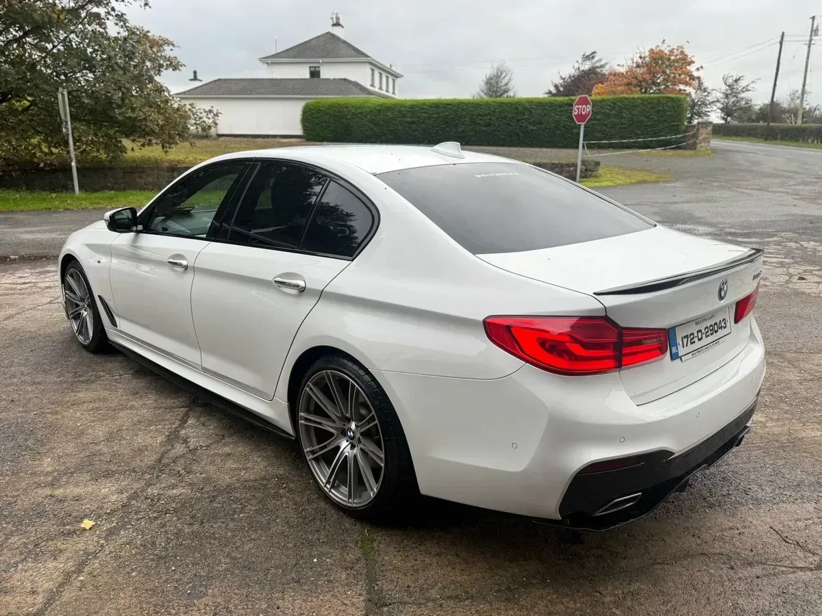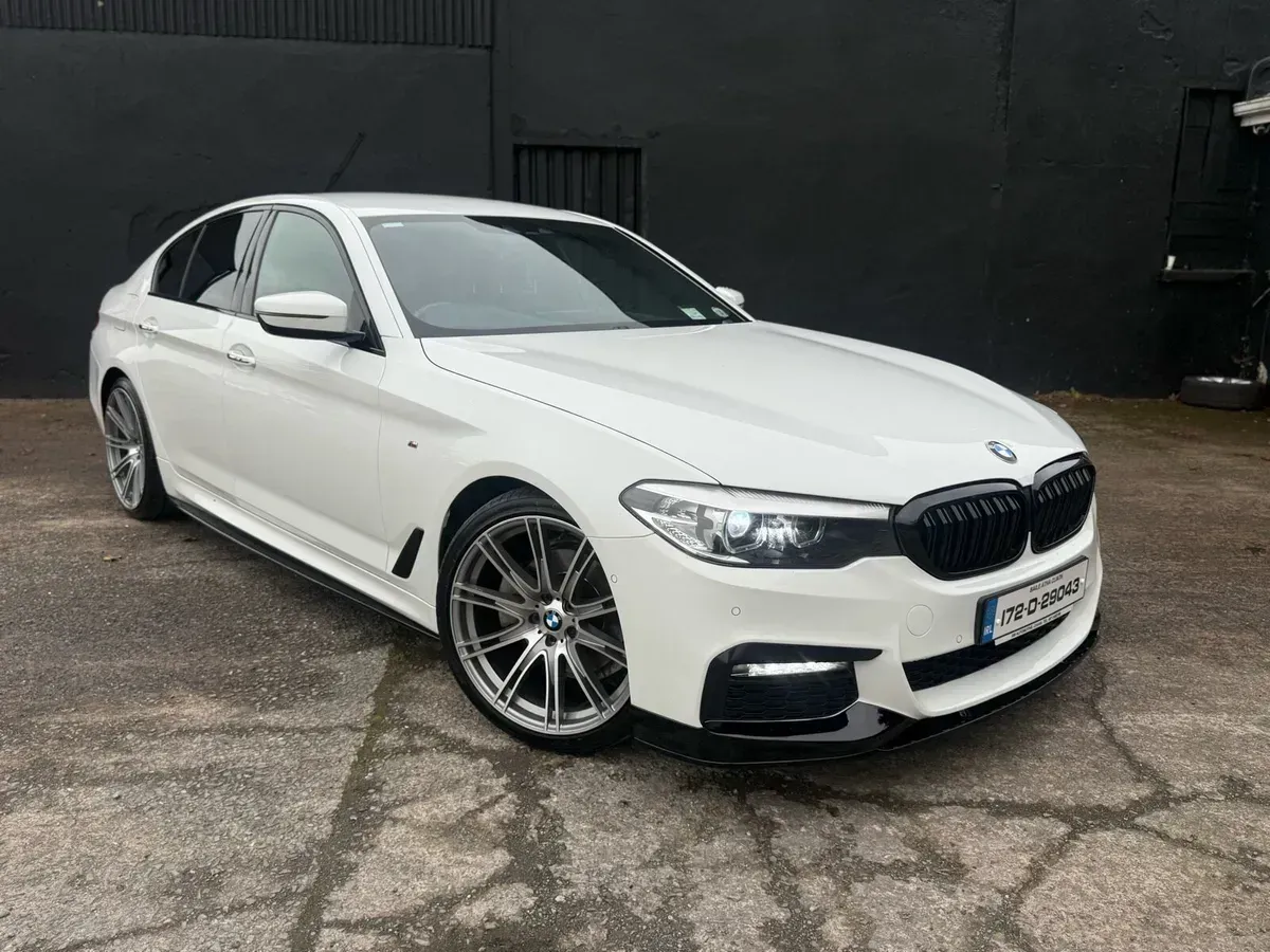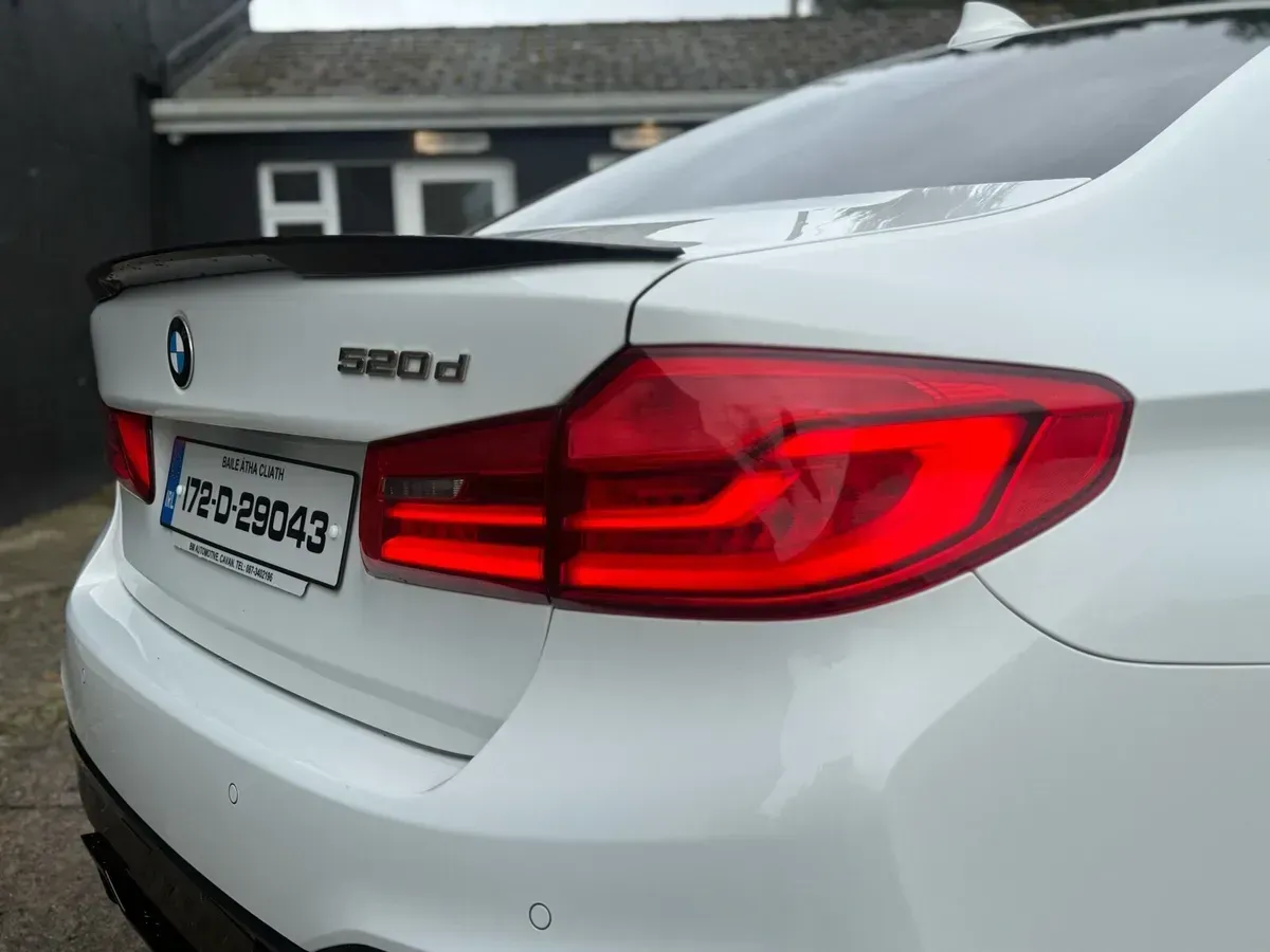 Finished in white with full M-Sport styling and full M-Performance lip kit, this 520d G30 features full black leather interior, 8-speed automatic transmission with flappy paddle, 20" upgraded alloy wheels, large screen factory display with Apple CarPlay, parking sensors, heated seats, xenon headlamps, and dual climate control.